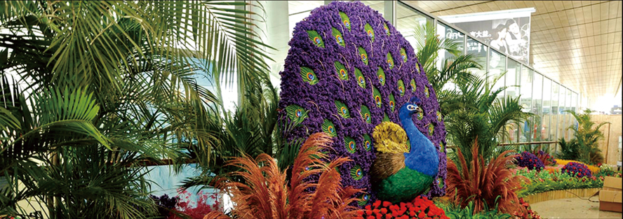 プリザーブドフラワーは、贈り物や卓上の装飾だけにとどまらず、さまざまなディスプレイが可能です。特に、室内や屋根がある施設会場などでは、太陽光を浴びることが極めて少ないため、より長く瑞々しさを保つことが出来るため、非常に費用対効果の高い花の装飾が可能となります。